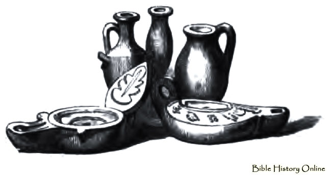 Illustration of ancient terra cotta lamps, used by lighting with oil.