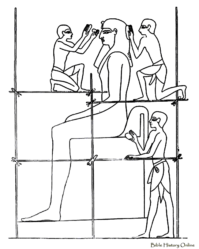 Painting at Thebes showing the construction of a royal colossus.