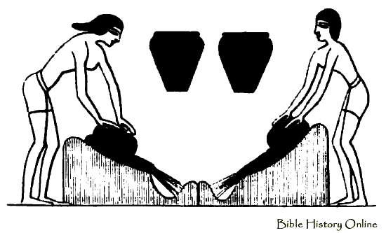 Ancient Egyptian fullers at work in cleansing and whitening of cloths.