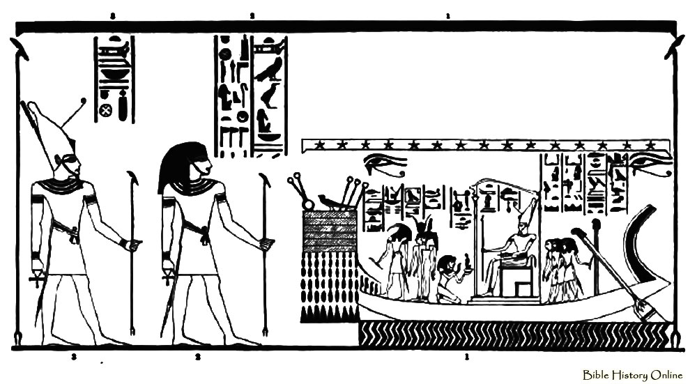 Illustration of the boat of Atum, an important deity of the Egyptian mythology.