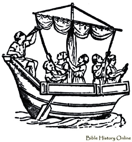 Illustration of Alexandrian ships called furling sails from a terra cotta lamp.